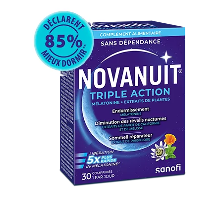 NOVANUIT® TRIPLE ACTION est un complément alimentaire avec une triple action sur le sommeil :